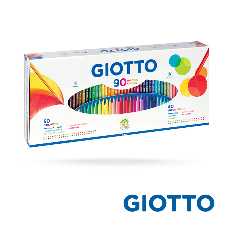 CONFEZIONE GIOTTO 90 COLORI 2500 Punti Racchiude 50 pastelli GIOTTO Stilnovo e 40 pennarelli GIOTTO Turbo Color.Perfetto per arricchire le opere con infinite sfumature di colore, usando tecniche miste pastelli + pennarelli. Accedi Devi effettuare il login per poter richiedere il premio